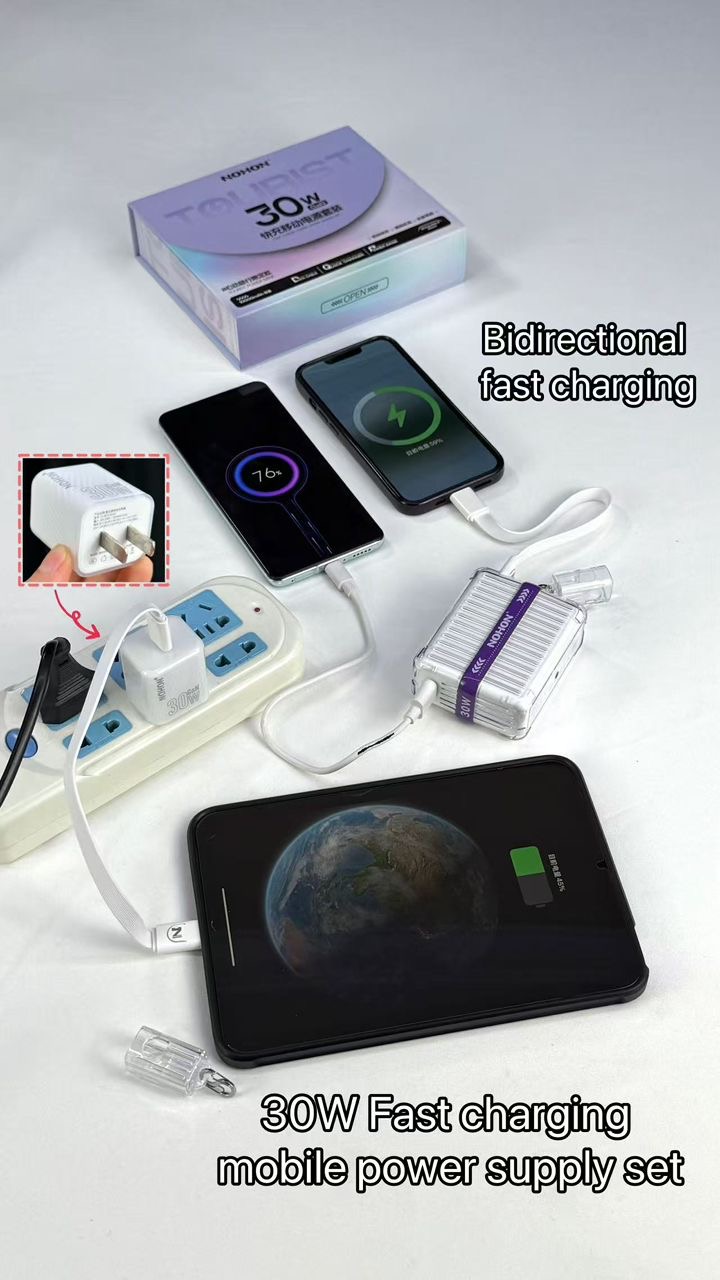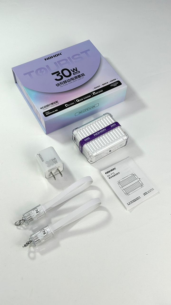 پاور بانک به همراه آداپتور فست شارژ30 وات برند NOHON