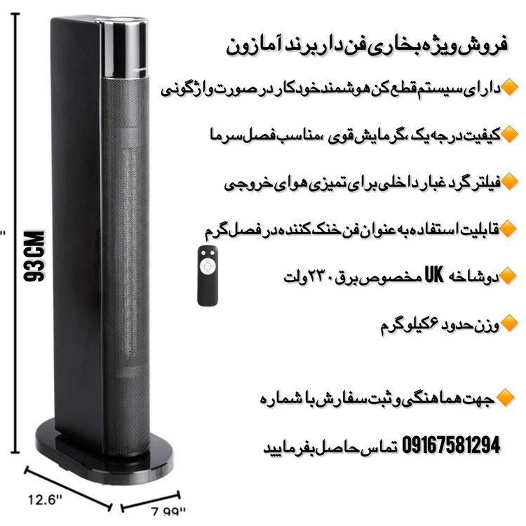 فروش کلیه محصولات برقی ارسالی مستقیم از دبی ۵۳ کارتن موجود به صورت عمده و تک هیتر برقی Amazon Basics مدل NTH22-18ARB یکی از کاربردیترین گزینهها برای گرمایش سریع و ایمن دارای هوش مصنوعی (در صورت افتادن به طور خودکار خاموش میشود ) این دستگاه با توان 2200 وات و سیستم 3 حالت گرمایش (از جمله حالت ECO برای صرفهجویی در انرژی) طراحی شده تا بهراحتی محیط شما را در کمترین زمان گرم کند. مشخصات خرید • برند: Amazon Basics • مدل: NTH22-18ARB • توان مصرفی: 2200 وات • ولتاژ: 220-240 ولت • فرکانس: 50 هرتز • تعداد حالت گرمایش: 3 حالت (شامل ECO) • سرعت فن: 2 سرعت قابل تنظیم • نوع عملکرد: گرمایش برجی با قابلیت نوسان (Oscillating) • قابلیتها: ترموستات قابل تنظیم، تایمر، کنترل از راه دور • استانداردها: CE اروپا، نشان ایمنی WEEE • طراحی: قابل حمل، کمصدا و ایمن برای اتاق کودک، مناسب دفتر کار یا سالن