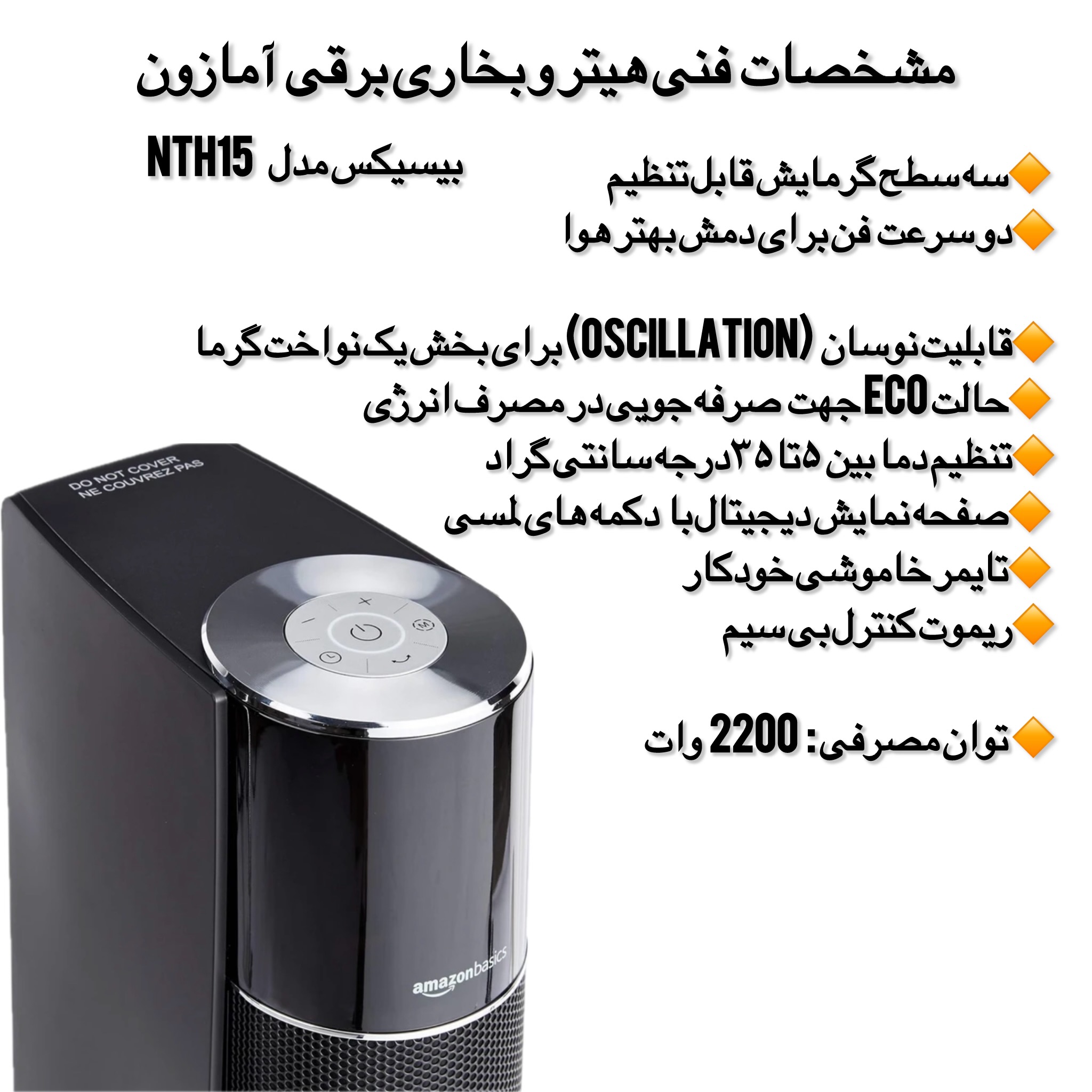 فروش کلیه محصولات برقی ارسالی مستقیم از دبی ۵۳ کارتن موجود به صورت عمده و تک هیتر برقی Amazon Basics مدل NTH22-18ARB یکی از کاربردیترین گزینهها برای گرمایش سریع و ایمن دارای هوش مصنوعی (در صورت افتادن به طور خودکار خاموش میشود ) این دستگاه با توان 2200 وات و سیستم 3 حالت گرمایش (از جمله حالت ECO برای صرفهجویی در انرژی) طراحی شده تا بهراحتی محیط شما را در کمترین زمان گرم کند. مشخصات خرید • برند: Amazon Basics • مدل: NTH22-18ARB • توان مصرفی: 2200 وات • ولتاژ: 220-240 ولت • فرکانس: 50 هرتز • تعداد حالت گرمایش: 3 حالت (شامل ECO) • سرعت فن: 2 سرعت قابل تنظیم • نوع عملکرد: گرمایش برجی با قابلیت نوسان (Oscillating) • قابلیتها: ترموستات قابل تنظیم، تایمر، کنترل از راه دور • استانداردها: CE اروپا، نشان ایمنی WEEE • طراحی: قابل حمل، کمصدا و ایمن برای اتاق کودک، مناسب دفتر کار یا سالن